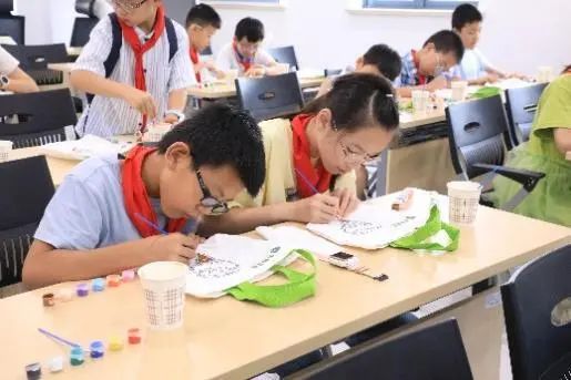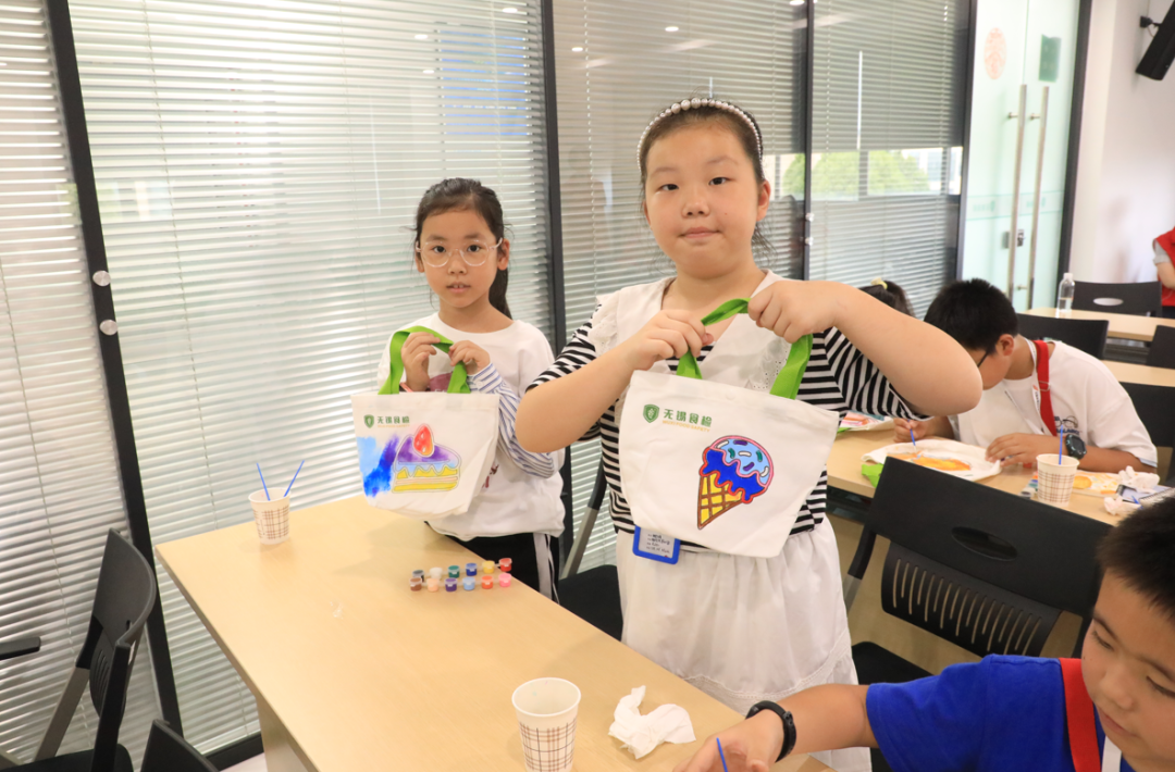 帆布包彩绘环节充满欢声笑语。点燃孩子们摸索科学的热情。正在情景化模仿超市中实践出产日期识别、养分成分化读等适用技术。